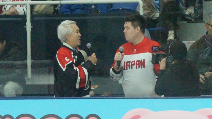 1Pと2Pのインターバルに横山剣のインタビュー、2Pと3Pのインターバルに石原伸晃氏(日本アイスホッケー連盟公式アンバサダーらしい)のインタビューがありました。