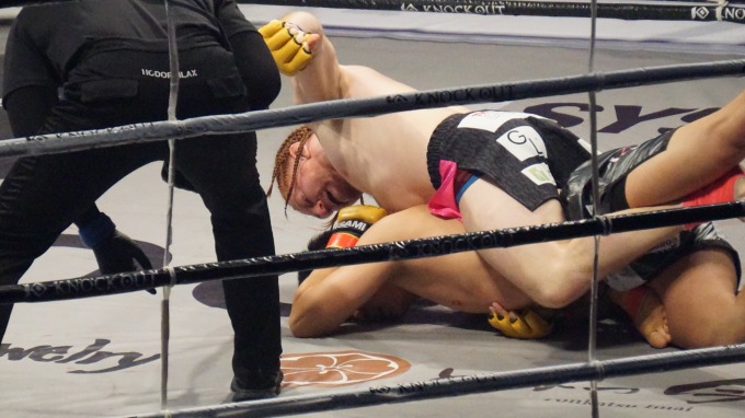 で、最後はバックを取られてパウンドの連打→レフェリーストップ。