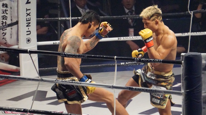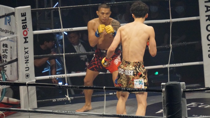 じっくり対峙しつつ近場で打ち合いたいプンルアンと、スピードで置き去りにしたい大雅。