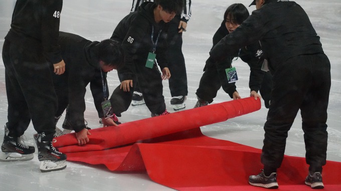 レッドカーペットを丸めるのにめちゃくちゃ苦戦してたヤツ。